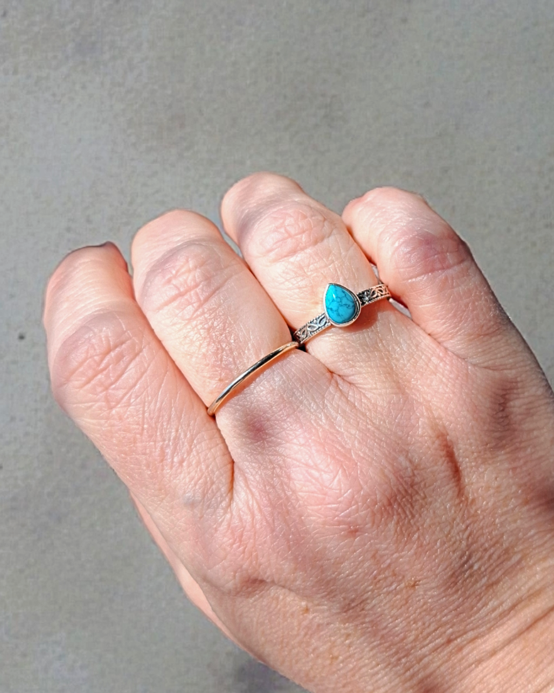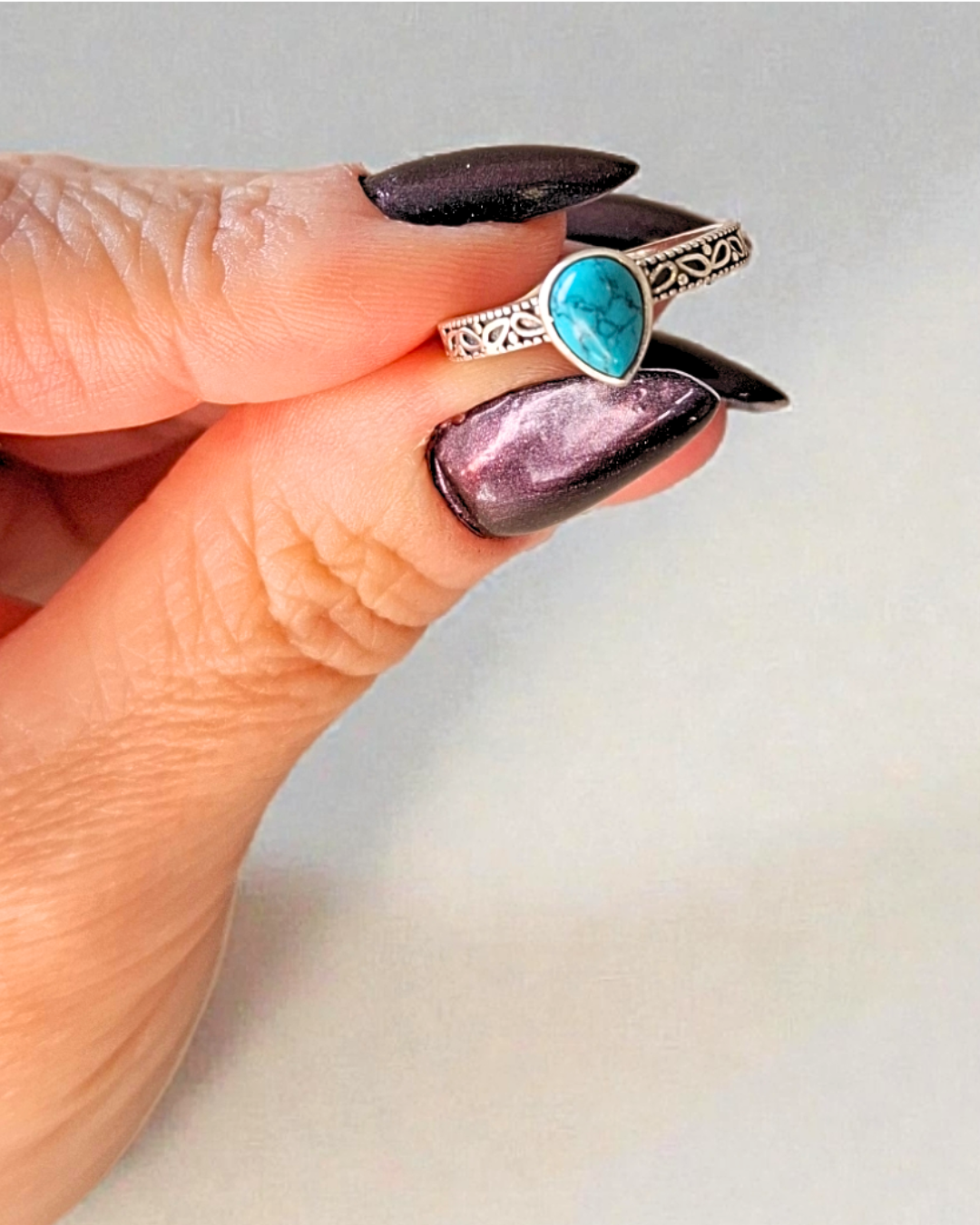 Anel em prata 925 e pedra natural turquesa. Tamanho 15-16