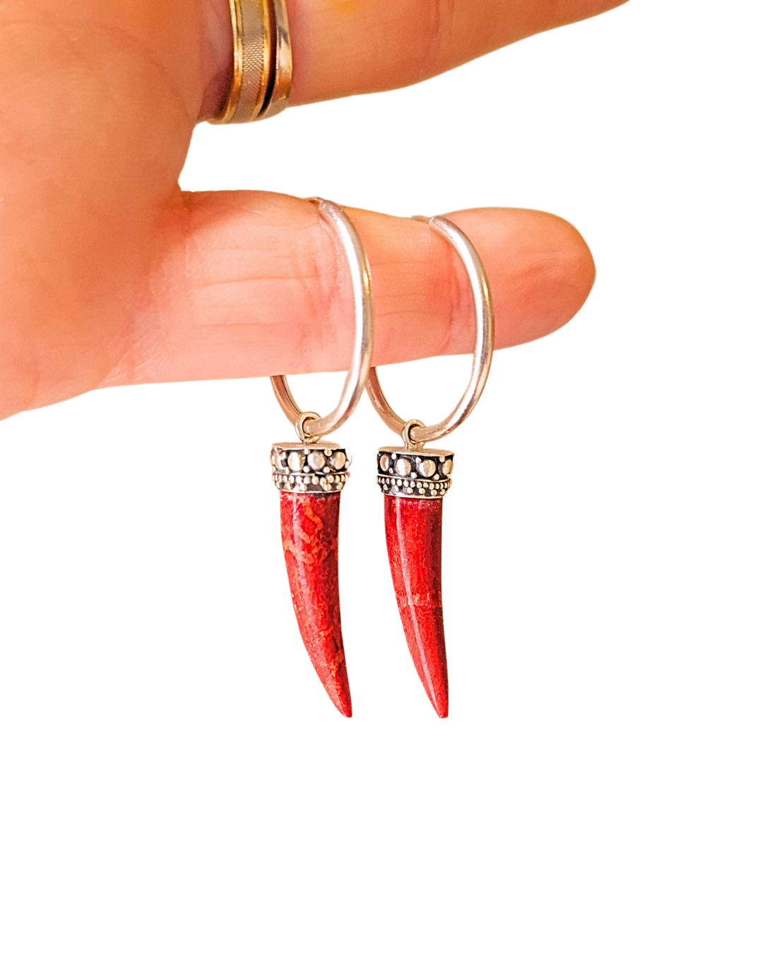 Argola em prata 925 e pingentes de pedras naturais coral.