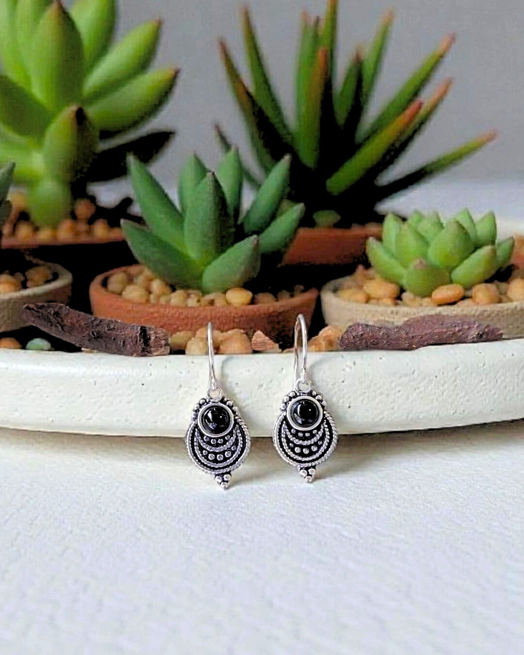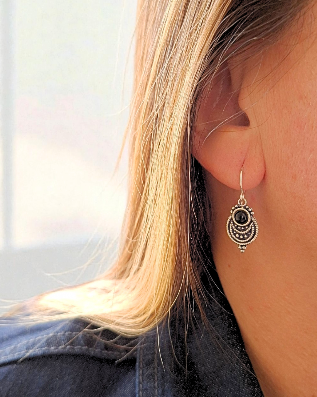 Brinco em prata 925 e ônix preto. Leve e delicado.