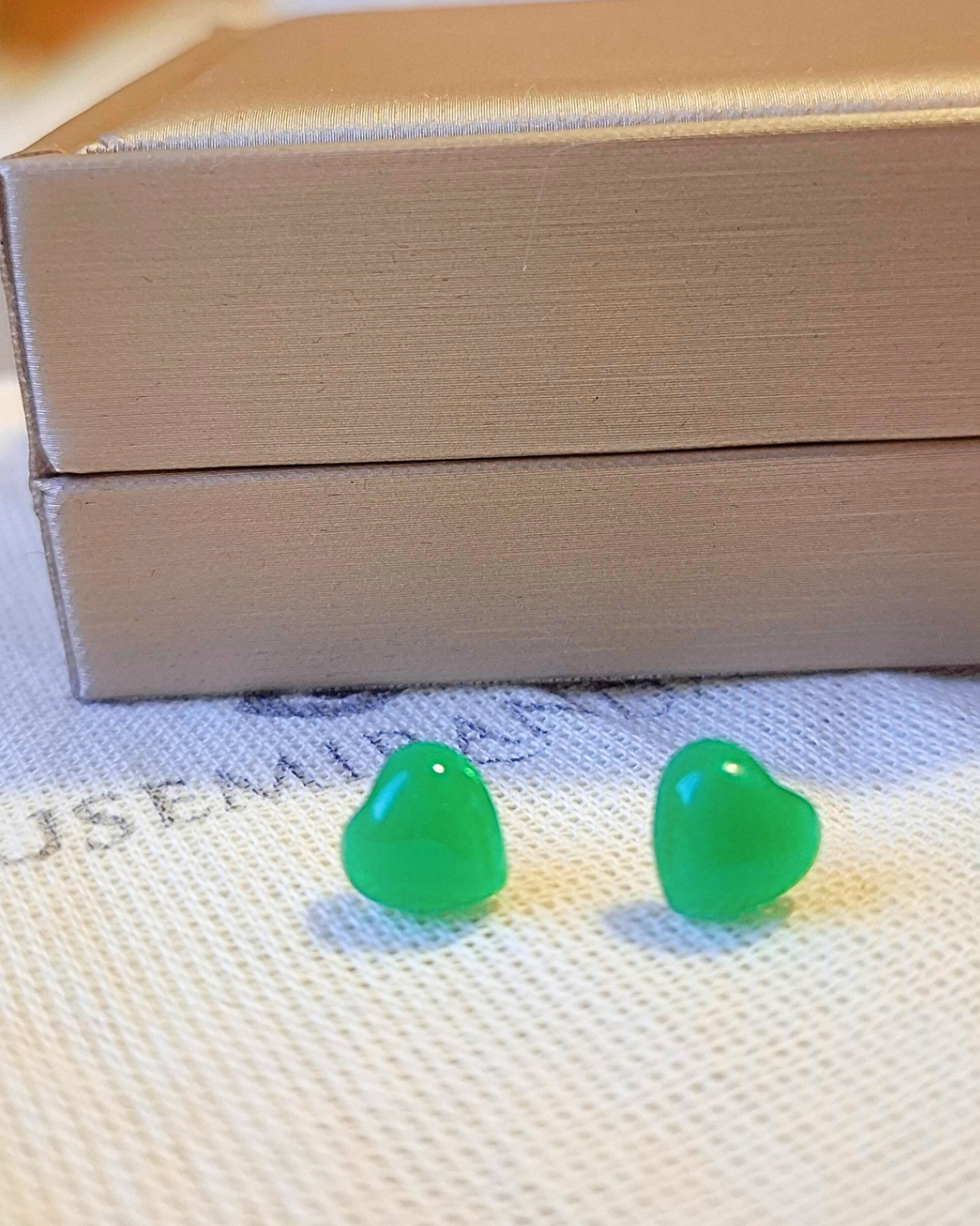 Brinco de pedra natural jade verde malásia e base em prata 925.
