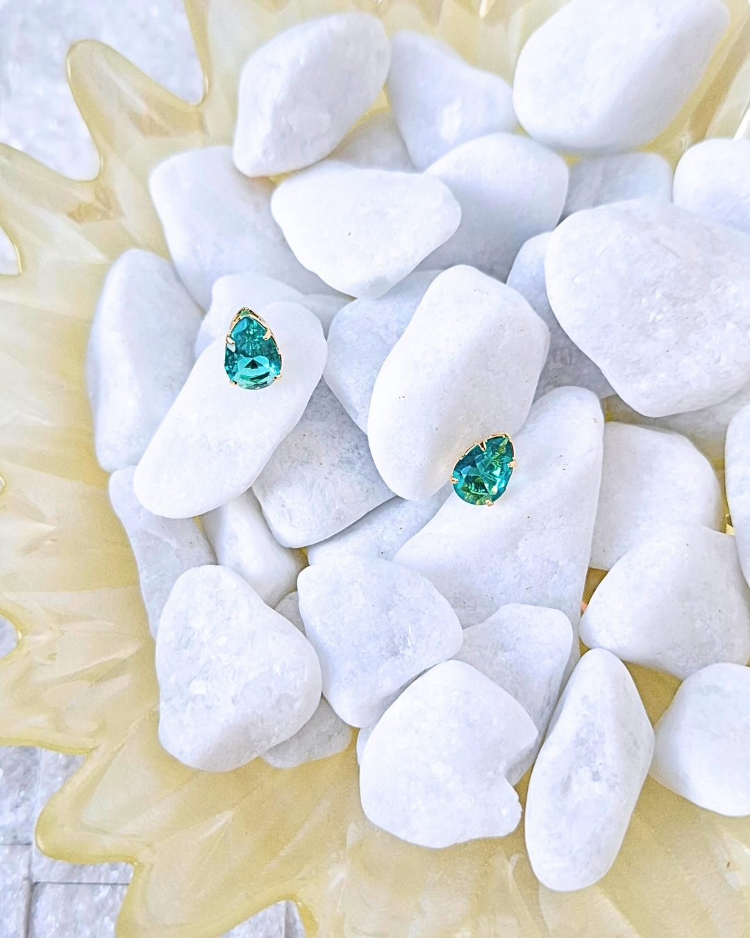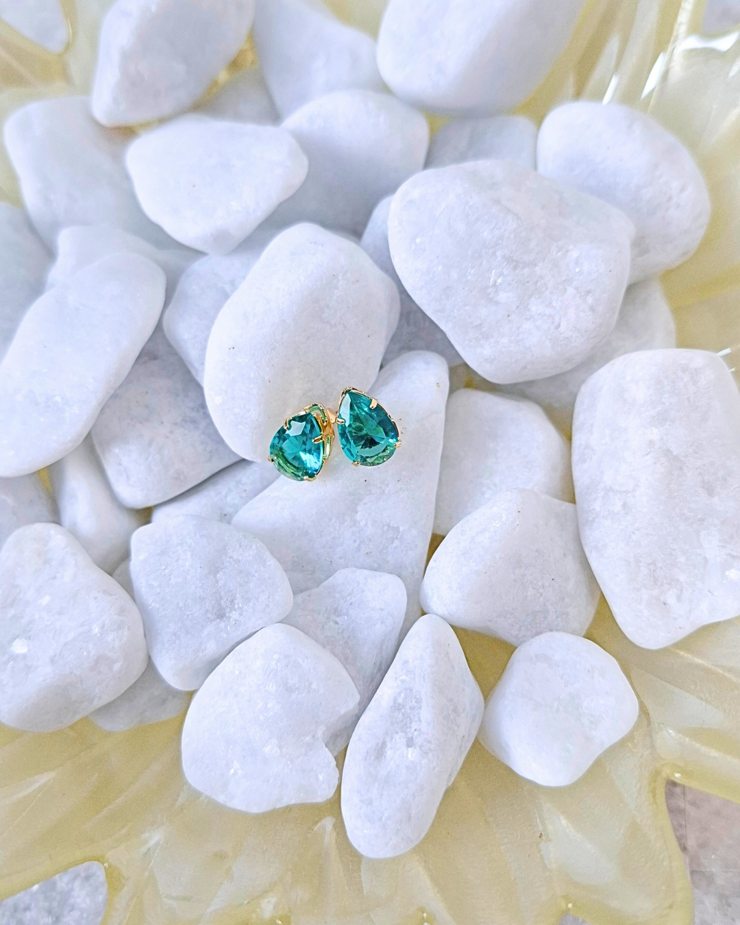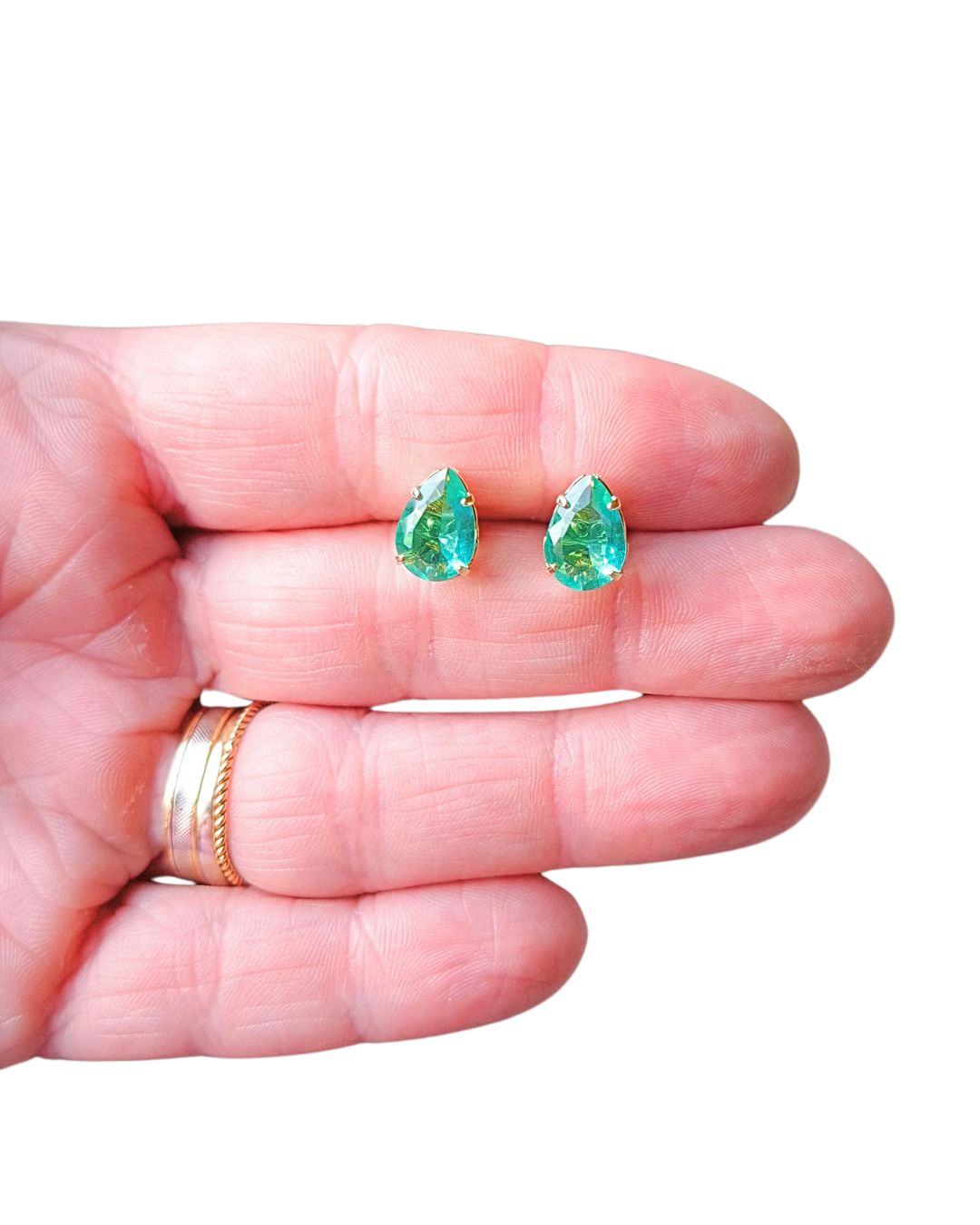 Brinco em gota com zircônia verde. Banho em ouro.