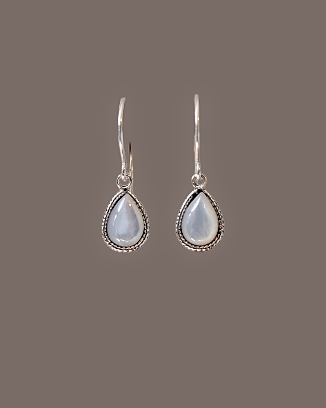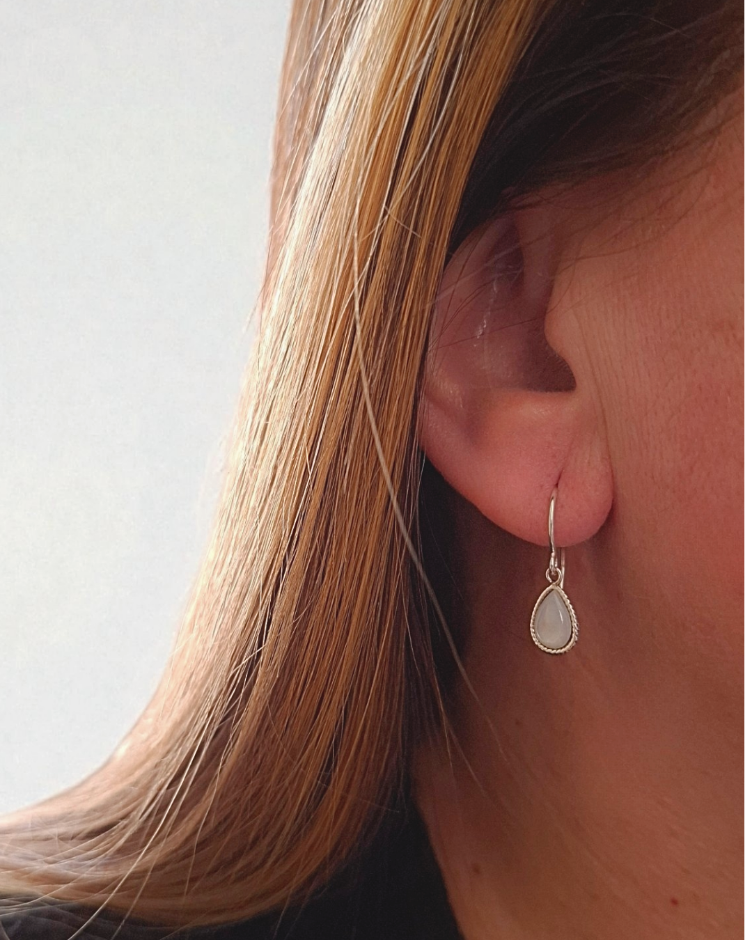 Brinco em prata 925, base anzol e gota mini de pedra natural mafrepérola.