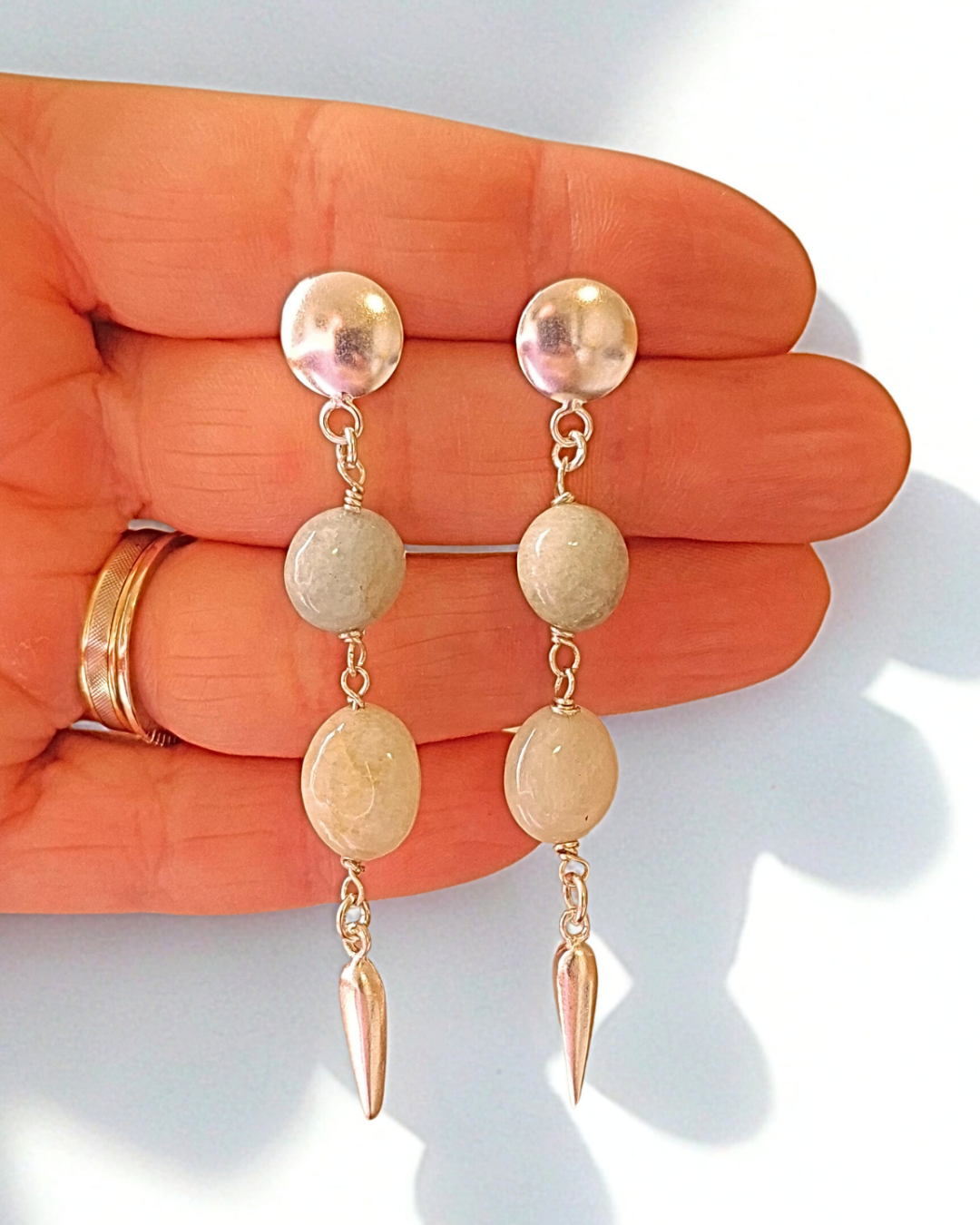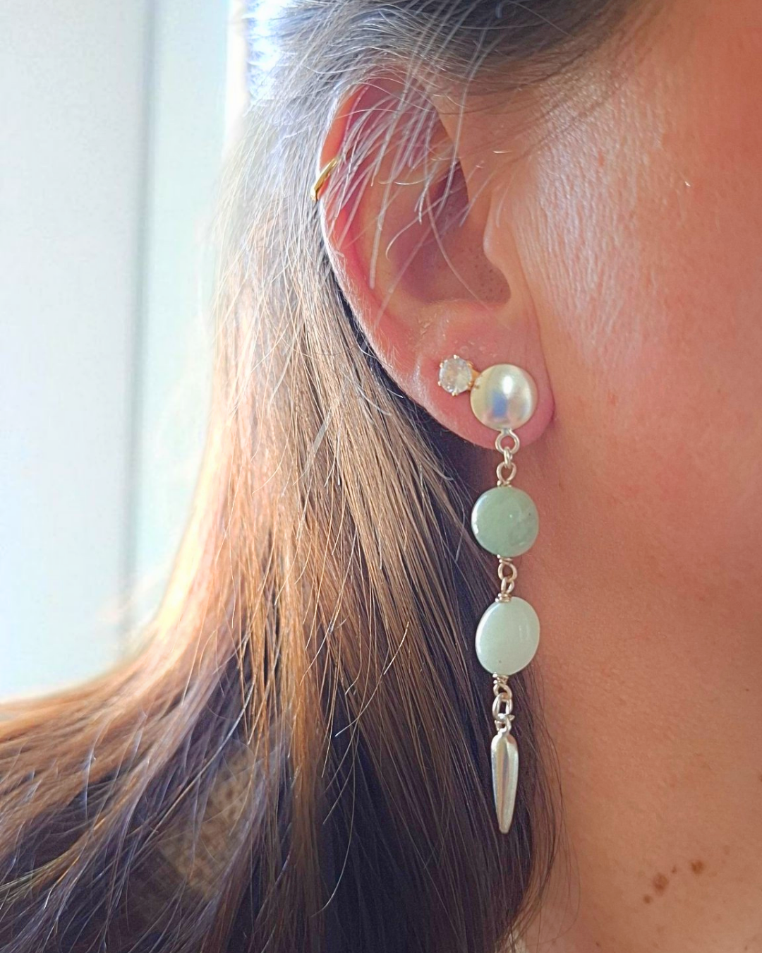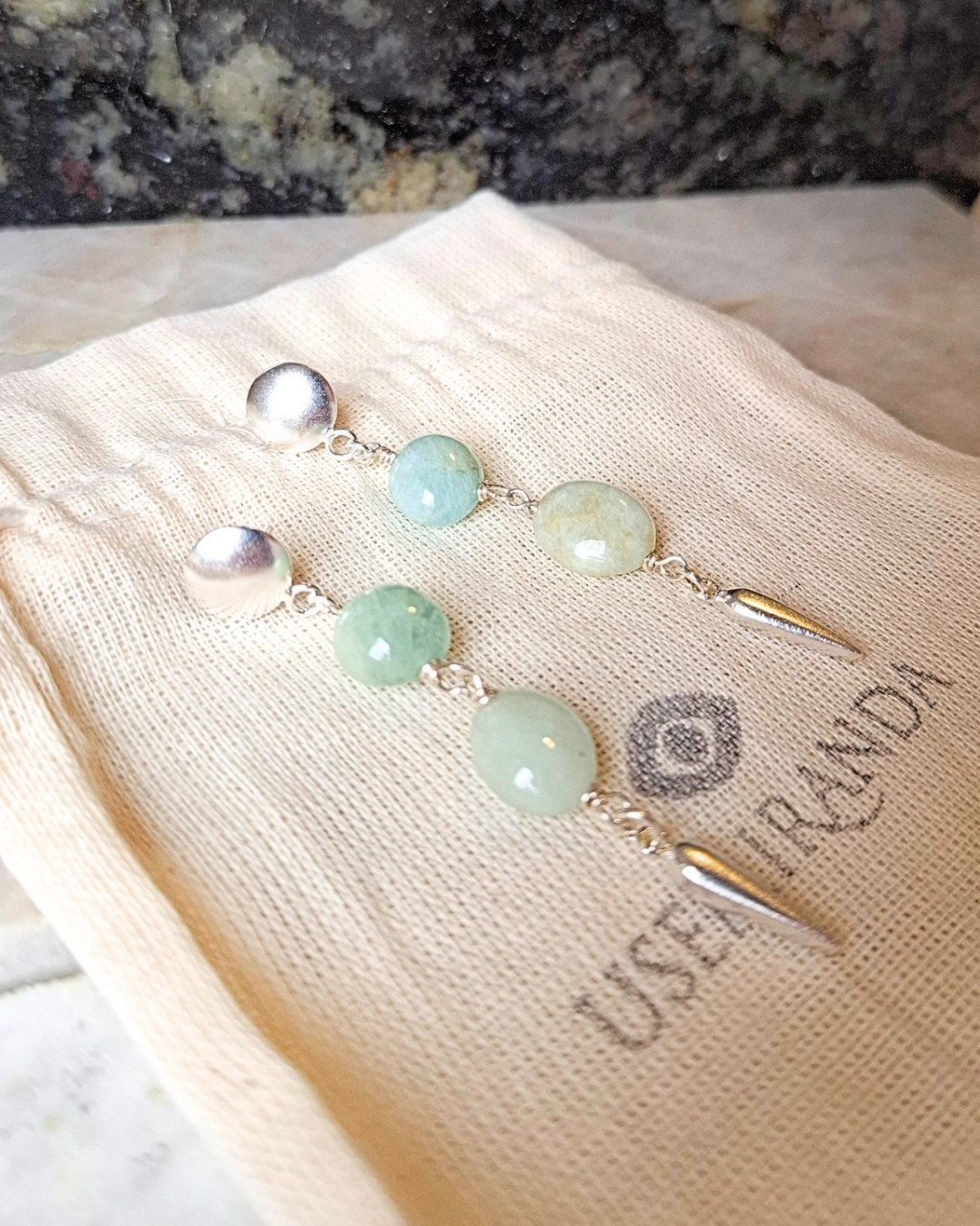 Brinco na prata 925 com pedras naturais água marinha e ponteira em prata 925. Acompanha tarraxas. Base botão.