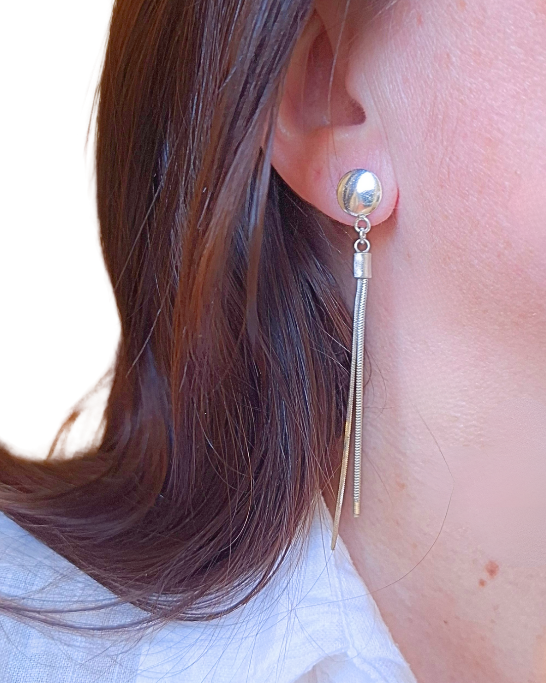Brinco todo em prata 925, base moeda com tarraxas. 8cm de comorimento. Super leve e estiloso.