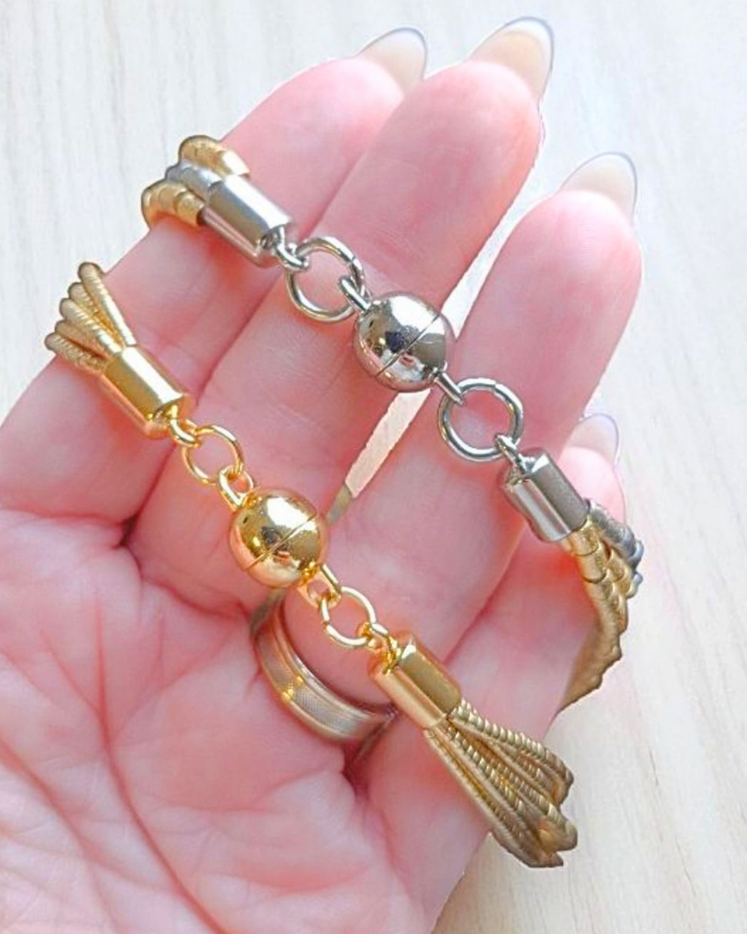 Colar de canutilhos com 5 voltas e fecho em ímã. 45cm de comprimento.