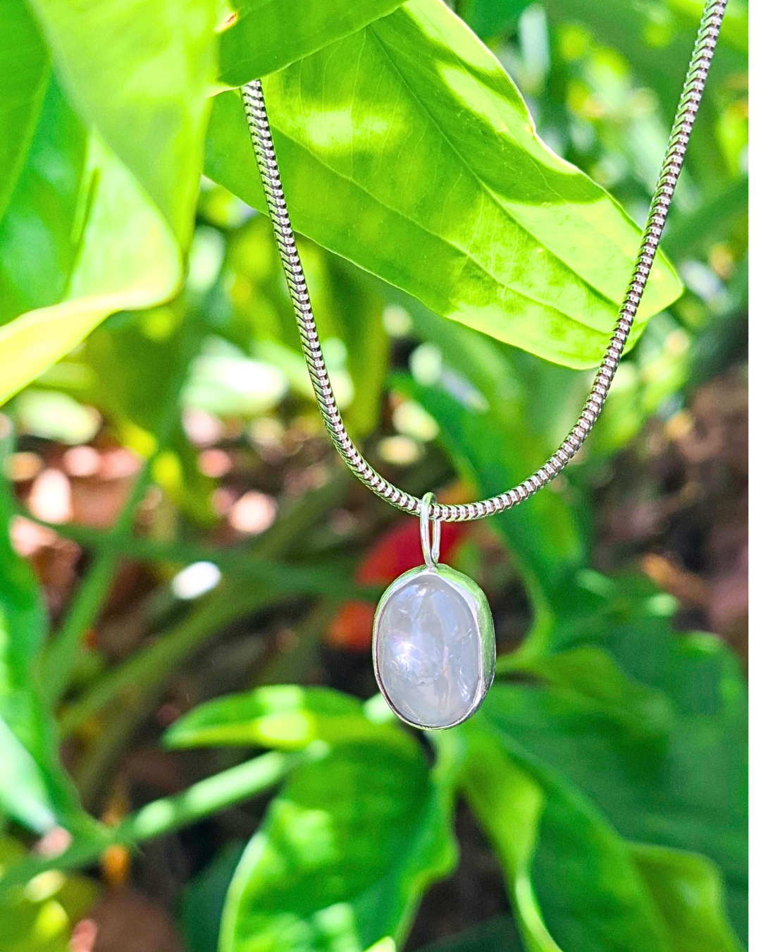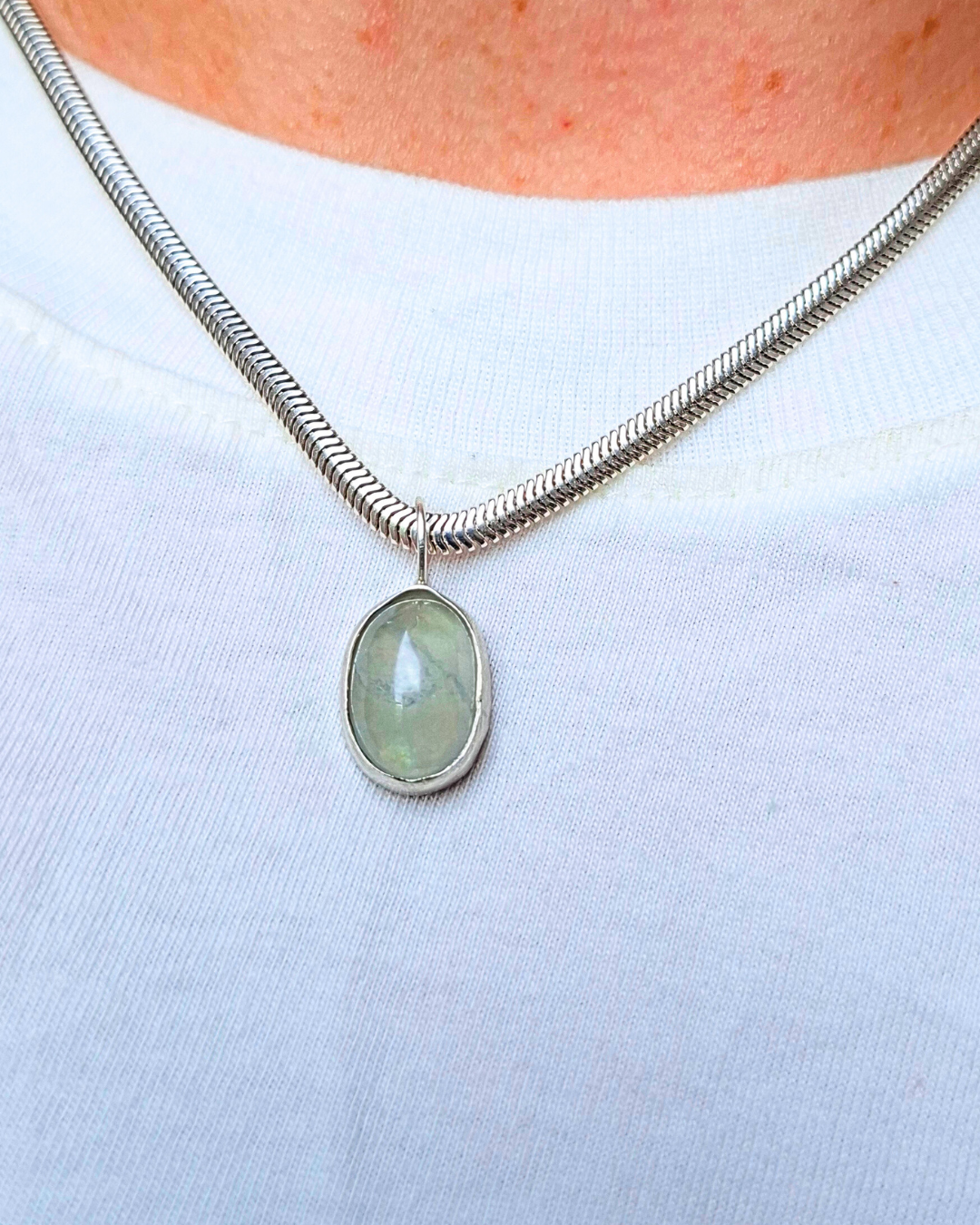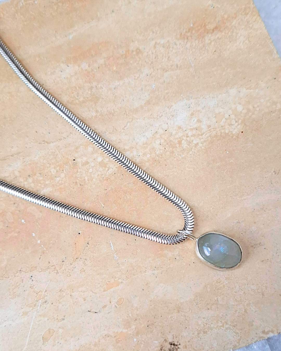 Colar na corrente lacraia em prata 925 e pingente de pedra natural água marinha oval de 12mm. 40cm de comprimento e 5cm de extensor.
