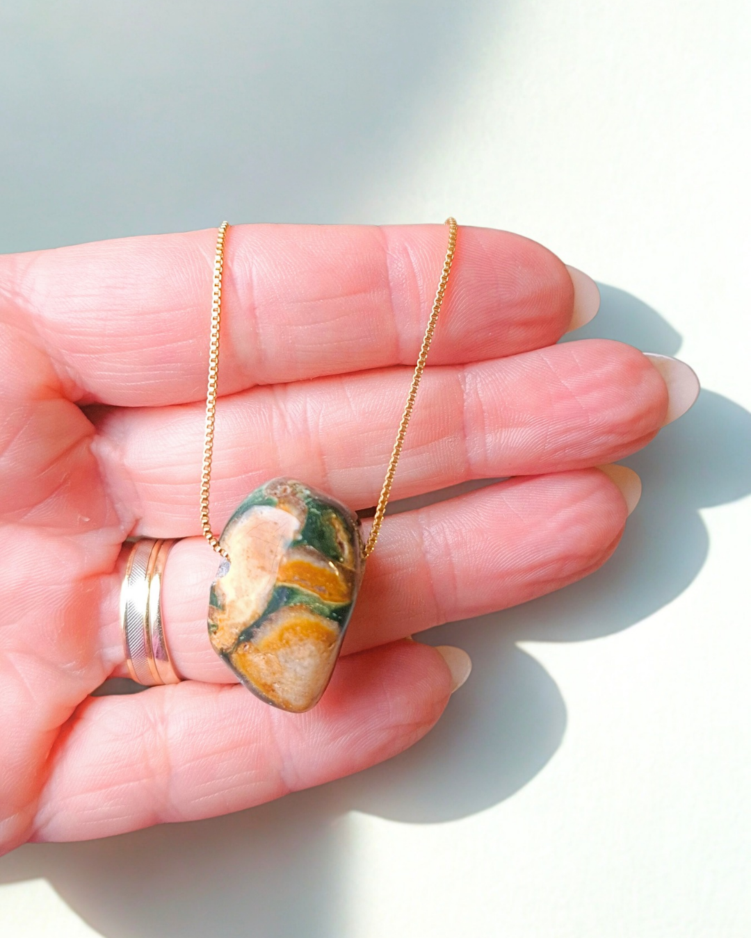 MATERIAL- pedra natural jaspe. Banho de ouro.