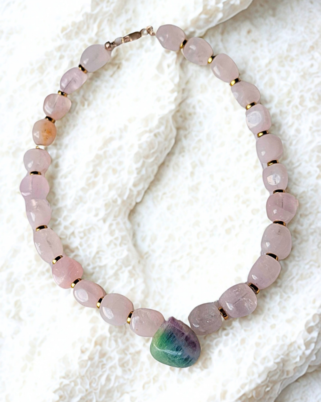 MATERIAL- pedras naturais quartzo rosa e fluorita.