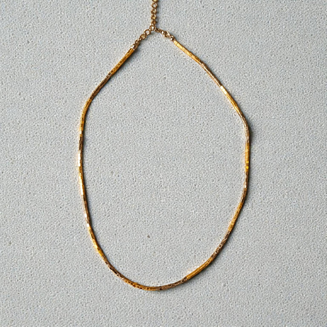 Colar de canutilhos prateadoa e dourados. 45cm. Possui extensor.