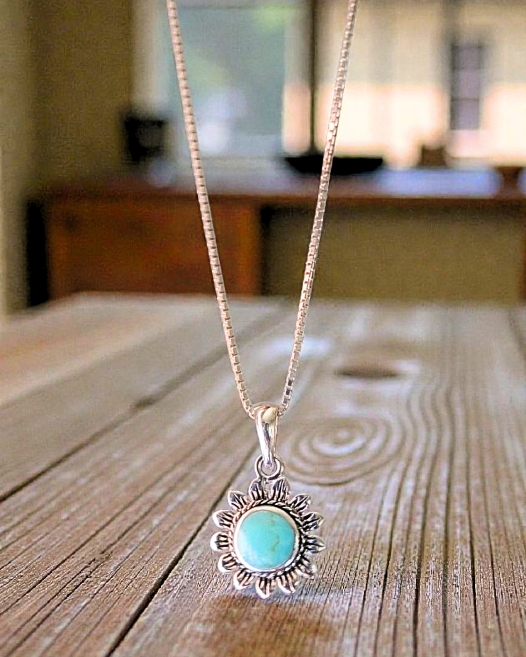 Colar em prata 925 com pedra natural turquesa. Acompanha corrente veneziana de 50cm.