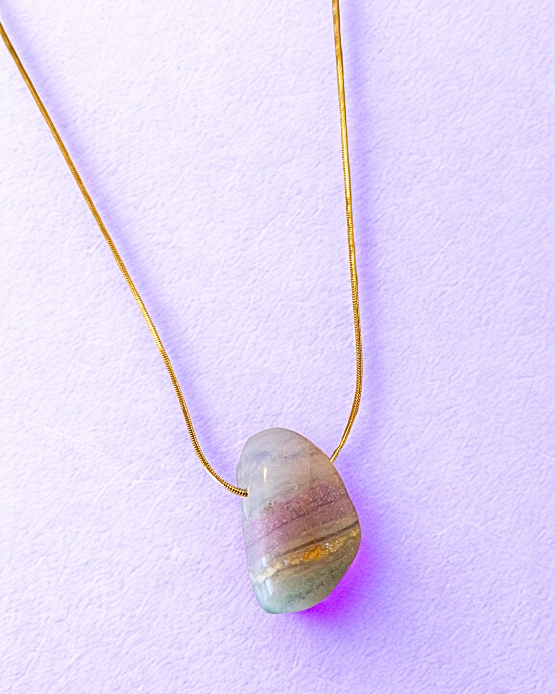 MATERIAL - Pedra natural fluorita bruta. Banho de ouro.