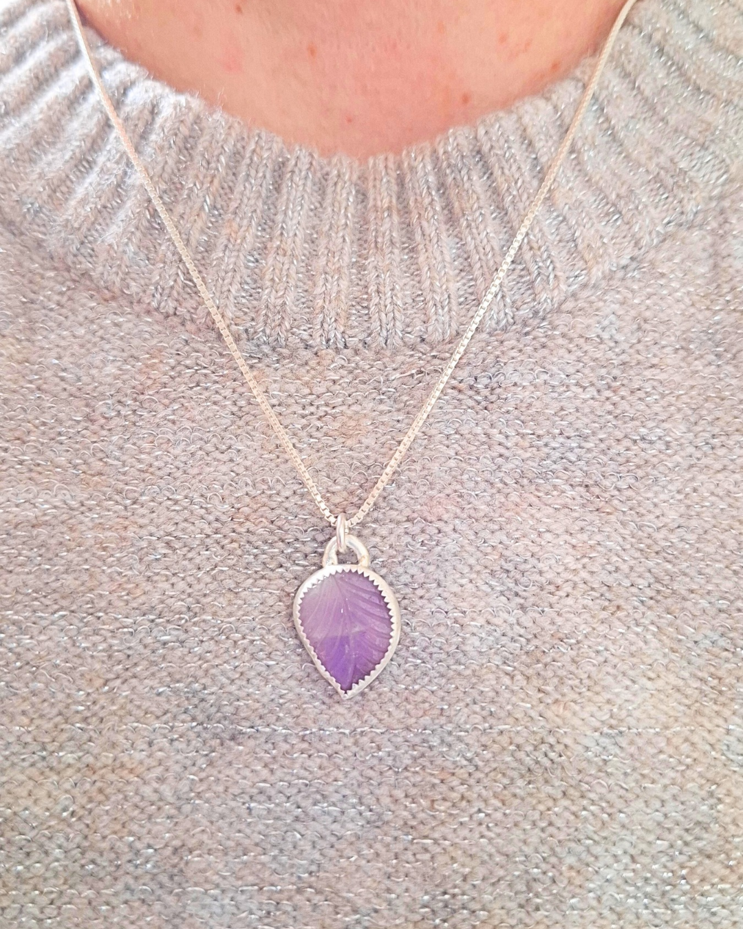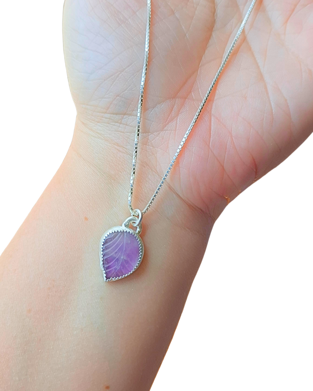 Colar em prata 925 e pedra natural na lapidação em folha. Corrente veneziana em prata 925 de 50cm de comprimento.