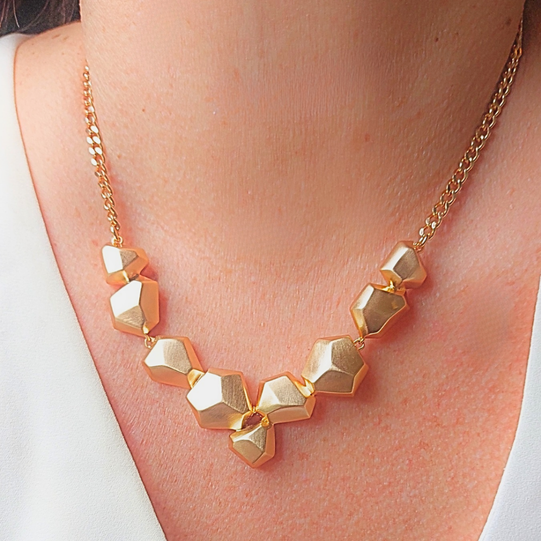 Colar geométrico com acabamento fosco e banho de ouro. 45cm de comprimento. Vem com extensor.