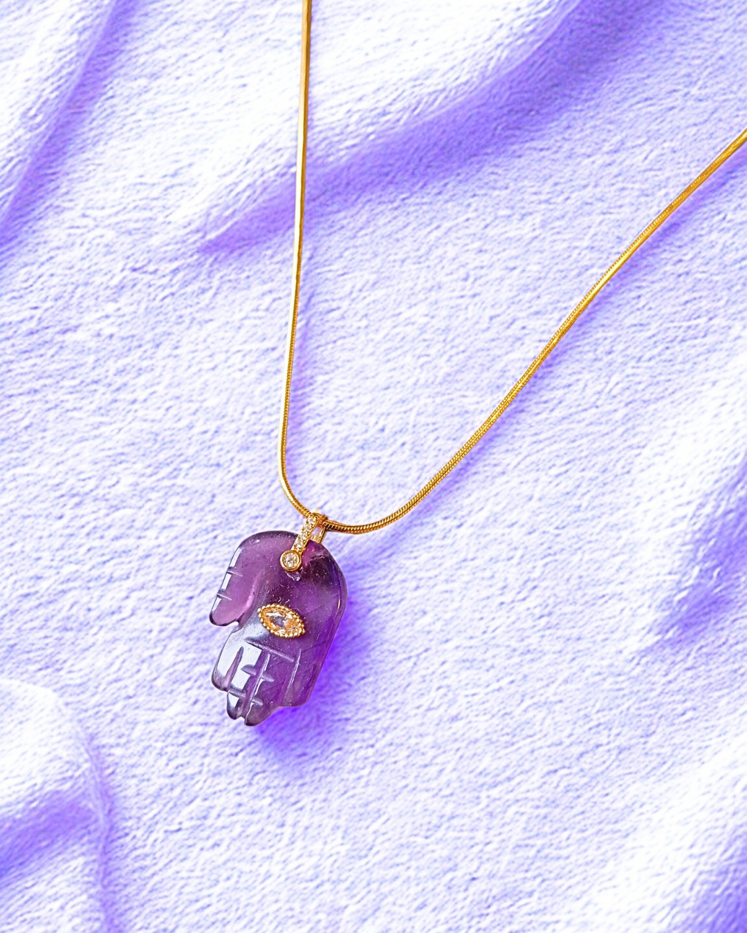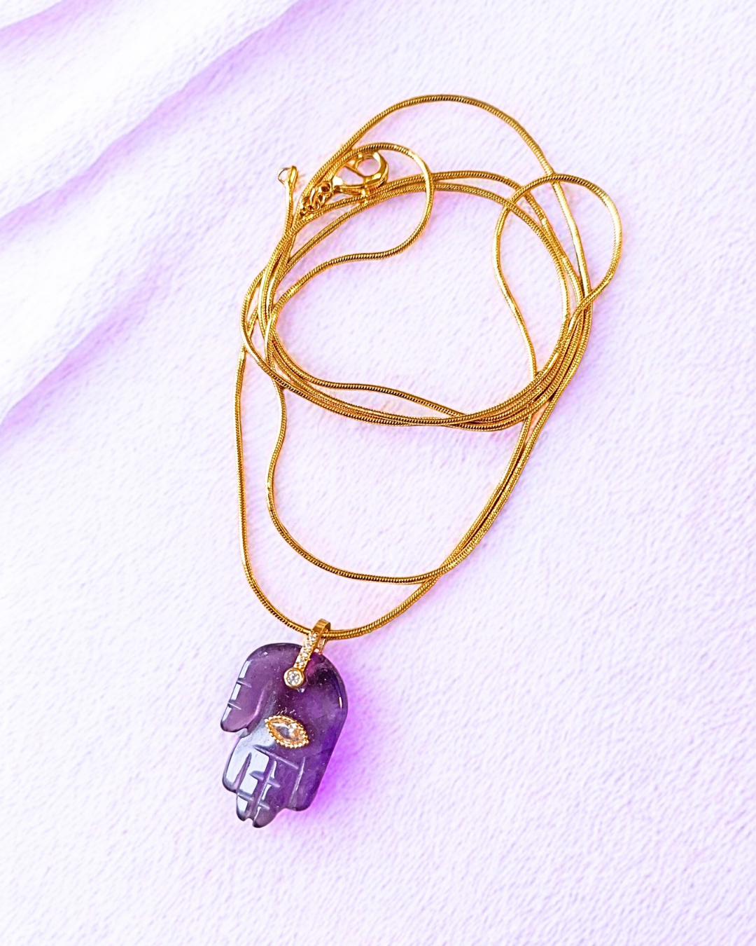 MATERIAL - Pedra natural ametista. Banho de ouro.