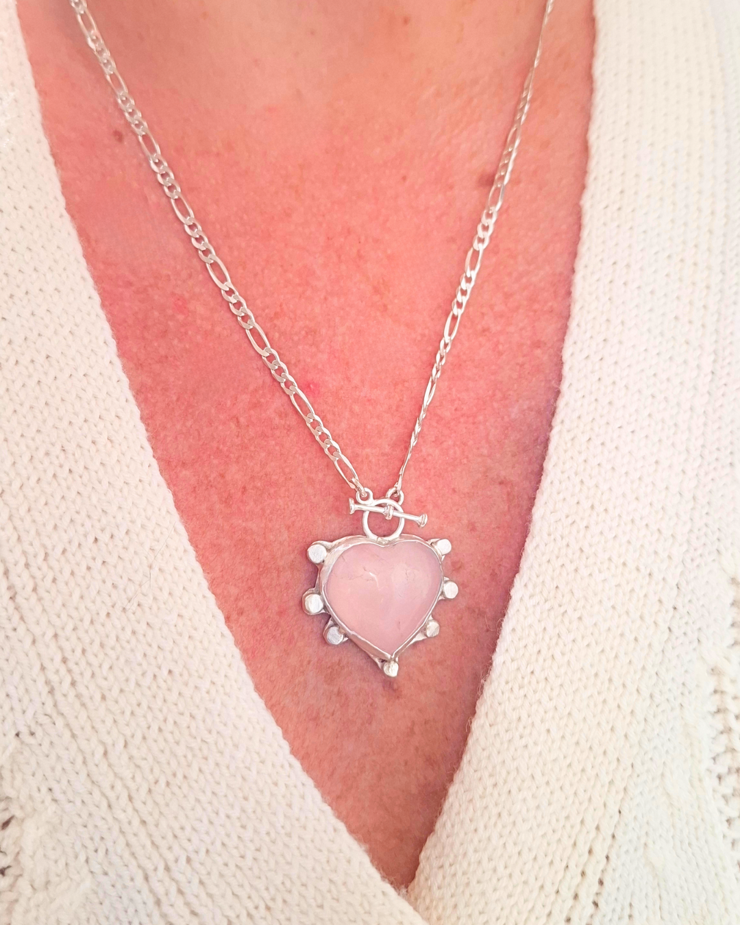 Colar em prata 925 e pedra natural quartzo rosa. A pedra do amor. Corrente de elos em prata 925 de 60cm de comprimento.