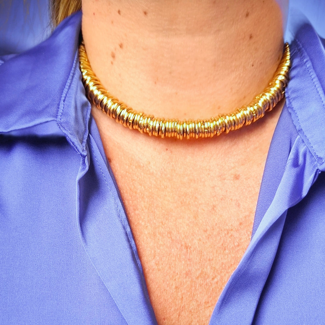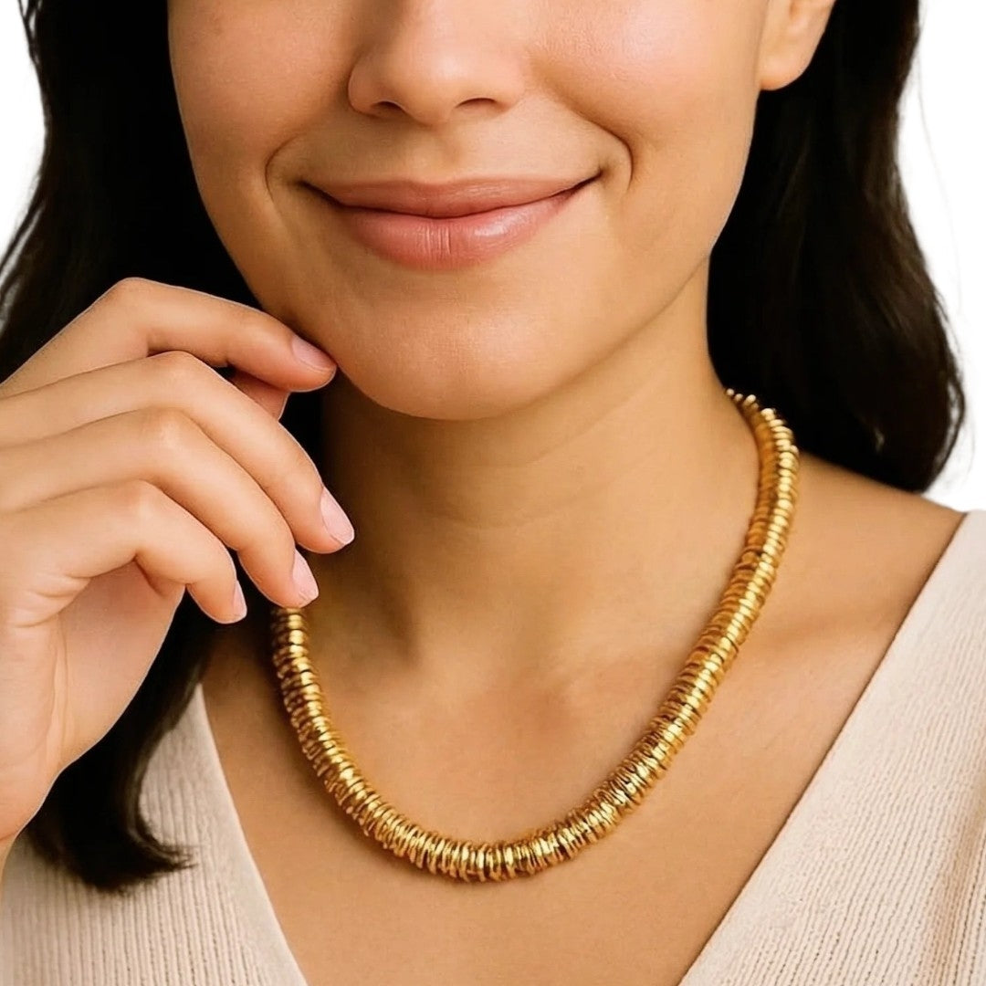 Colar artesanal com fecho íma e múltiplas argolas. Um colar sofisticado e robusto. 45cm. Possui extenbsor.