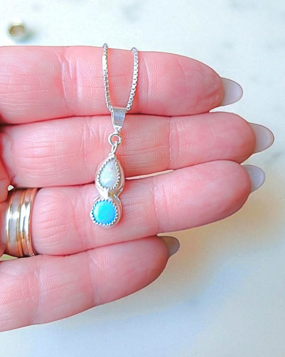 Colar em prata 925 com pedras naturais opala e turquesa. Corrente veneziana de 45cm.