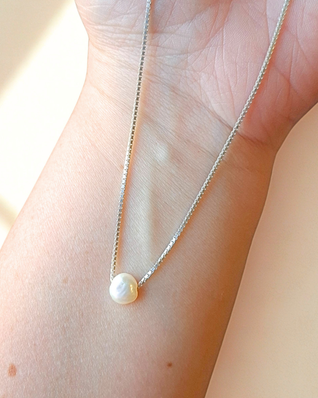 Colar em corrente veneziana em prata 925 e pérola natural de 6mm.