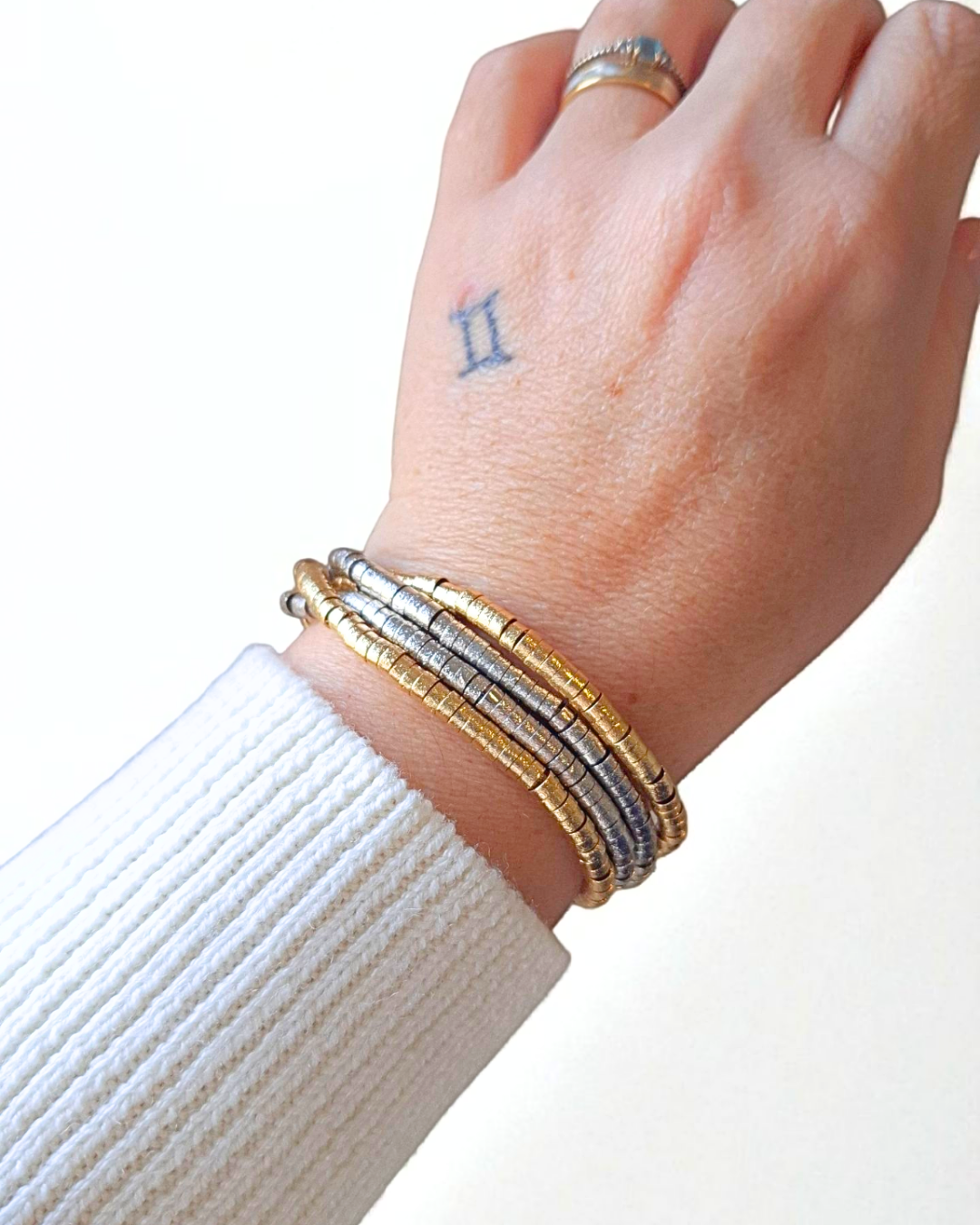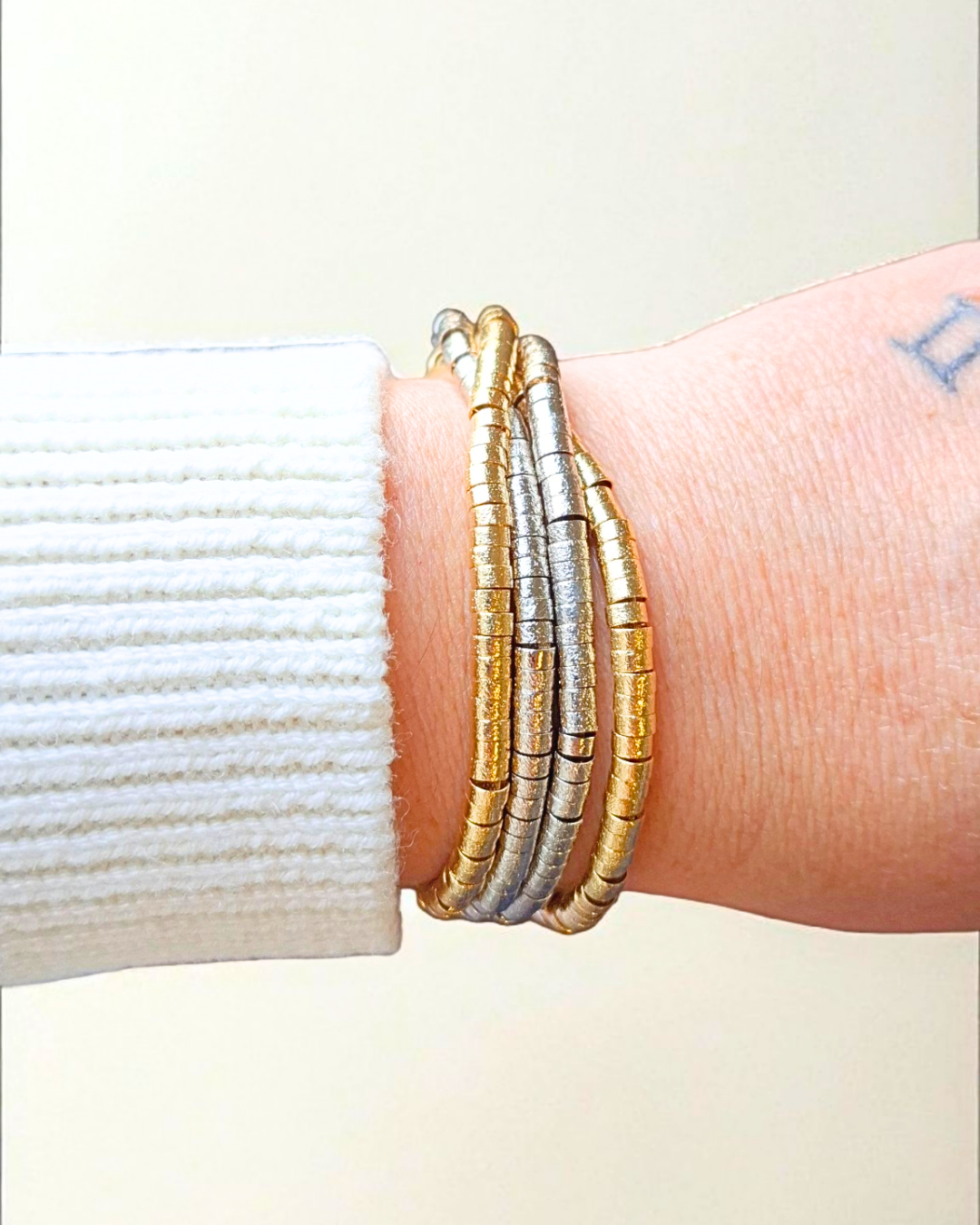 Pulseira de 4 fios de canutilhos com mix de banhos e fecho de ímã.