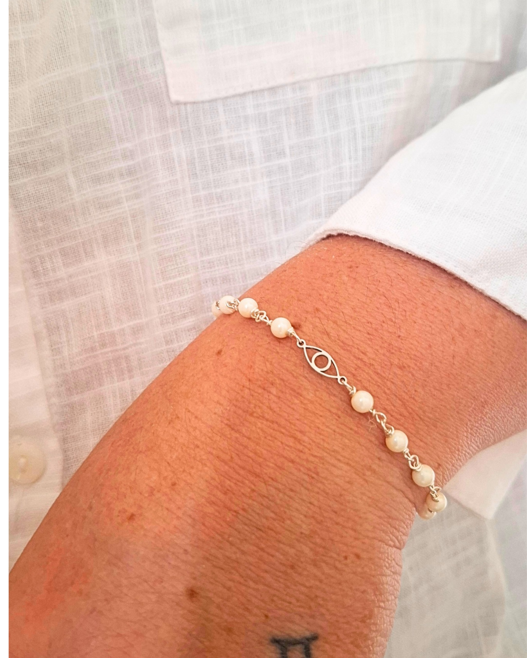 Pulseira em prata 925 e pérola shell. 18cm de comprimento.
